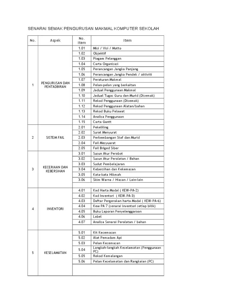 Senarai Semak Penyelenggaraan Komputer - Pdf Borang Laporan Nbos Seri Bemban Academia Edu - 3 2 2 senarai semak senarai semak ataupun ckecklist adalah satu dokumen yang digunakan untuk membantu individu dalam memastikan kesempurnaan menyelesaikan tugas yang dilaksanakan.